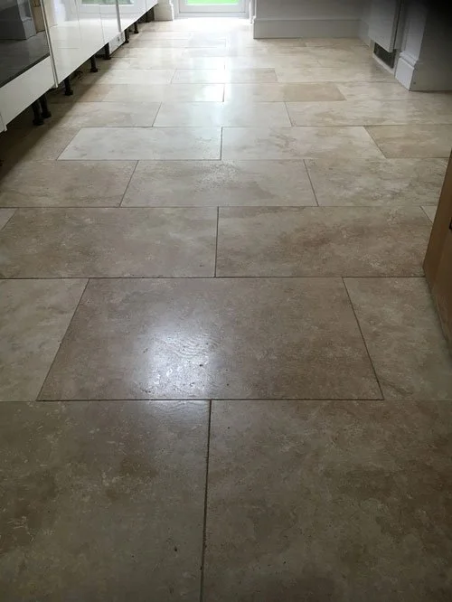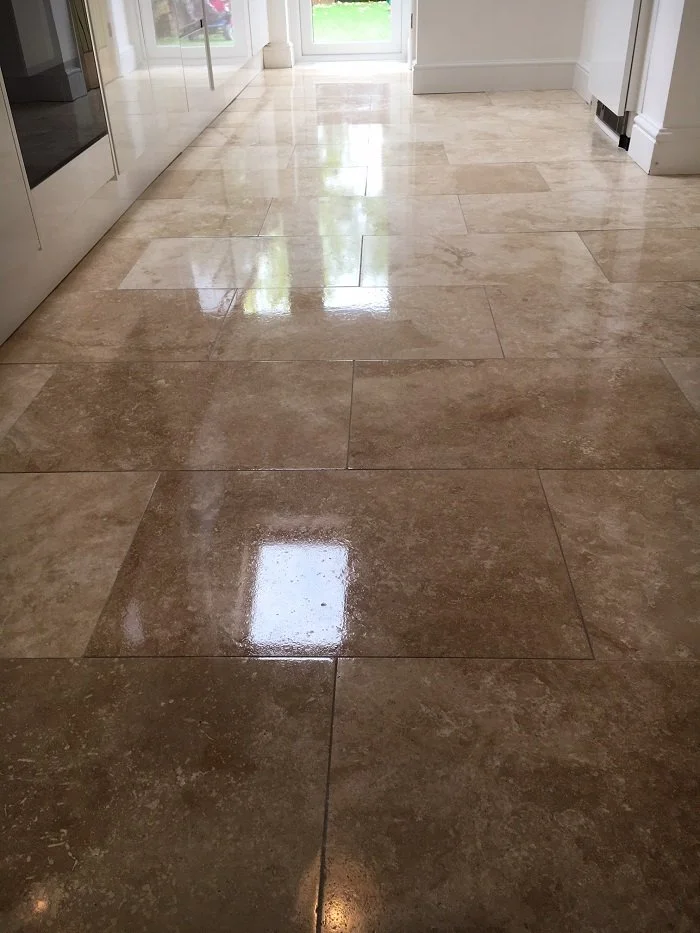 The stone floor in our photo has been polished using a natural process that enhances the depth of the shine achieved by the three-stage deep cleaning.