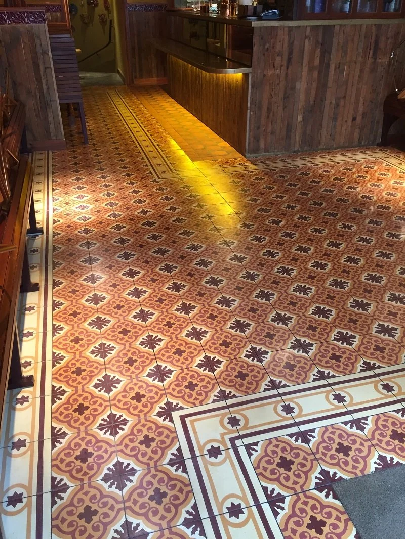 Some of the projects we have assisted in over the years range from encaustic floor tiling in coffee shops and restaurants, to large areas of concrete flooring in showrooms and schools.