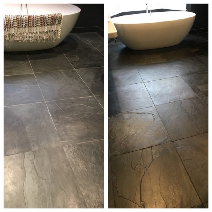 Some floor surfaces are more susceptible to damage. Sealed stone and slate floors often lose surface protection from the effects of limescale in the water. If left untreated, limescale will etch into the stone surface and damage it.